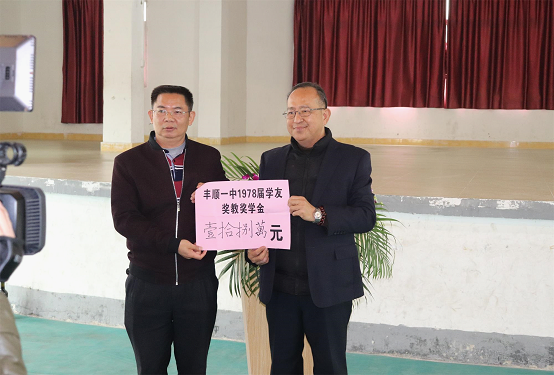 78届校友怀揣着学子对母校的深情,带着成功的喜悦,相聚一中,他们关注一中的发展,共谋一中美好蓝图。他们还向丰顺一中捐赠了18万元,用作奖教奖学基金。