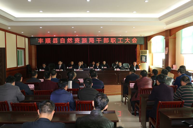 干部职工大会上,钟于明科长宣读了任职文件。黎委托局长代表局领导班子作表态发言。郑奕雄副书记作重要讲话,他提出:一要提高政治站位,深入学习贯彻习近平新时代中国特色社会主义思想和党的十九大、十九届三中全会精神;二要抓好班子、带好队伍,发扬好作风、好做法,加强理论、业务学习;三要做好做细做实各项工作,统筹山水林田湖草系统治理,切实为丰顺发展贡献力量。郭琪营副局长作重要讲话,他强调三点:一是充分认识自然资源管理机构改革的重要意义,从践行“两个维护”的高度抓好机构改革任务落实。提高政治站位,增强责任感、使命感、紧迫感,履行好应有的责任担当,绝不辜负市委市政府、县委县政府和全县人民的期望。二是立足新职责新使命,奋力开创自然资源工作新局面。要立足长远,探索推进各项工作,特别重视加快推进“多规合一”,抓好自然资源统一调查和确权登记,持续实施不动产登记“双提升”行动,深化拆旧复垦、垦造水田和深化自然资源“放管服”改革等工作。三是认真抓好党的建设新的伟大工程,深入推进全面从严治党向纵深发展。要牢固树立自然资源局首先是政治机关的要求,用科学理论武装头脑、指导实践、推动工作,严格履行全面从严治党的主体责任,持之以恒推进党风廉政建设和作风建设。