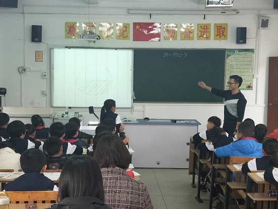 首先,李淼源老师为大家带来三年级的《分一分(一)》课堂展示。他以带大家去春游,遇到如何分果子的有趣例子引入,让学生们初步感受分数的魅力。课堂上学生积极思考,在动手画图中加深了对分数的认识和理解并收获了乐趣。