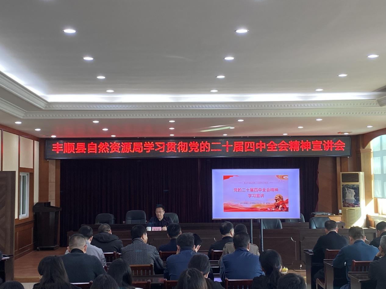 近日,丰顺县自然资源局组织召开学习贯彻党的二十届四中全会精神宣讲报告会。县委宣讲团成员、局党组书记、局长徐华森同志作专题宣讲,局全体干部职工参加会议。