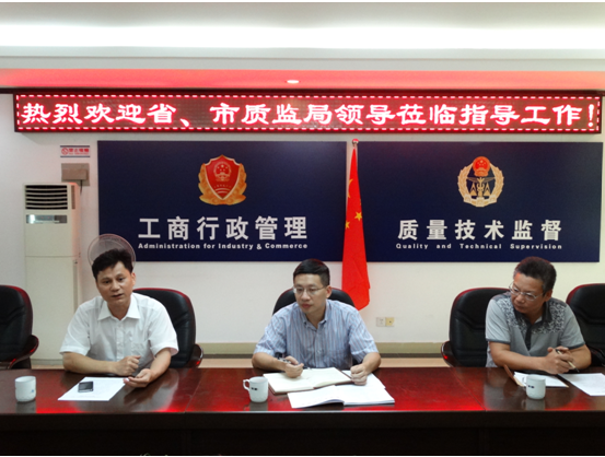 8月12日,省质监局科技处朱志龙副处长、市质监局房科辉局长到丰顺县调研省电声产品质量检测站建设工作。丰顺县刘超平副县长、工商和质监局赖建军局长等陪同调研。