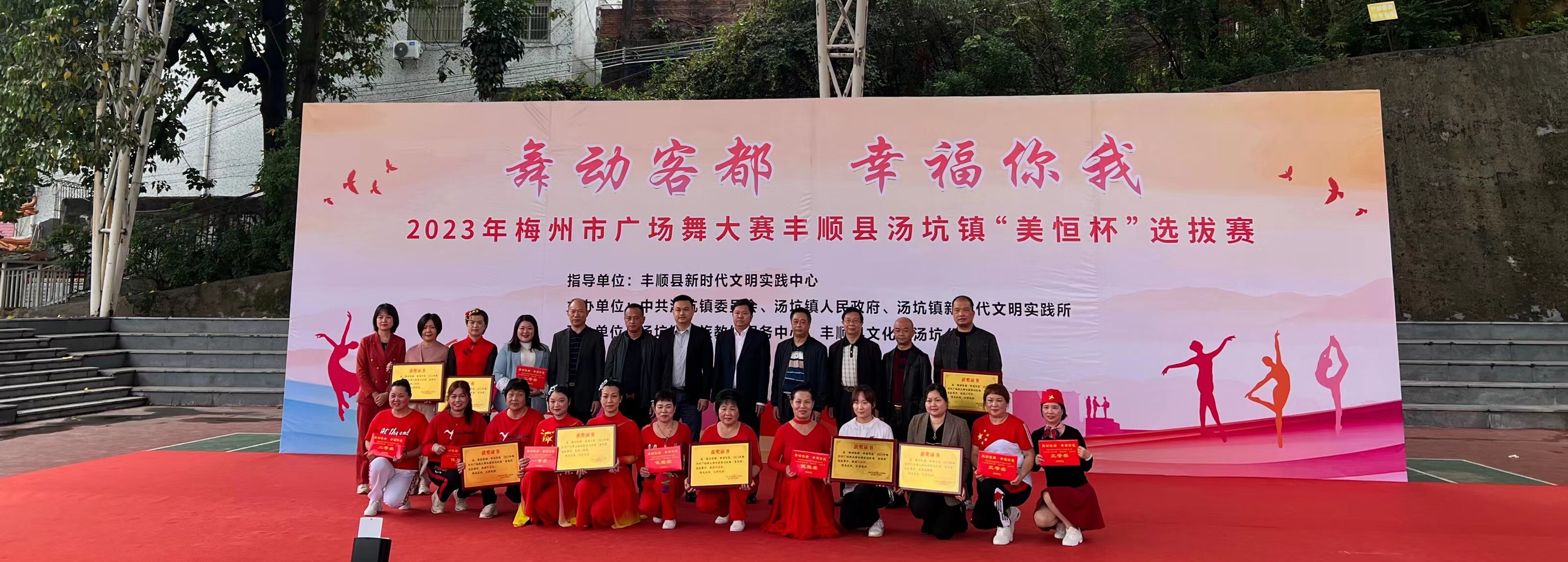 为提升人民群众的幸福感,展现新时代百姓的幸福生活和昂扬向上的精神风貌,凝聚团结奋进的强大精神力量,3月29日下午,“舞动客都·幸福你我”2023年梅州市广场舞大赛丰顺县汤坑镇“美恒杯”选拔赛在丰顺县汤坑镇大山背体育公园拉膜球场举行,来自汤坑镇各村(社区)的8支代表队同台竞技,为观众奉献了一场精彩绝伦的“舞林”盛宴。