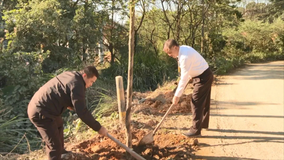 在北斗镇拾荷村植树点,县政协领导和党员干部及志愿者共同开展植树活动,活动现场大家一起扶树填坑、挥锹覆土、踏土夯苗,每道工序衔接有序,一排排新栽的树苗昂然挺立,为北斗镇增添了一片新绿、一抹亮色。