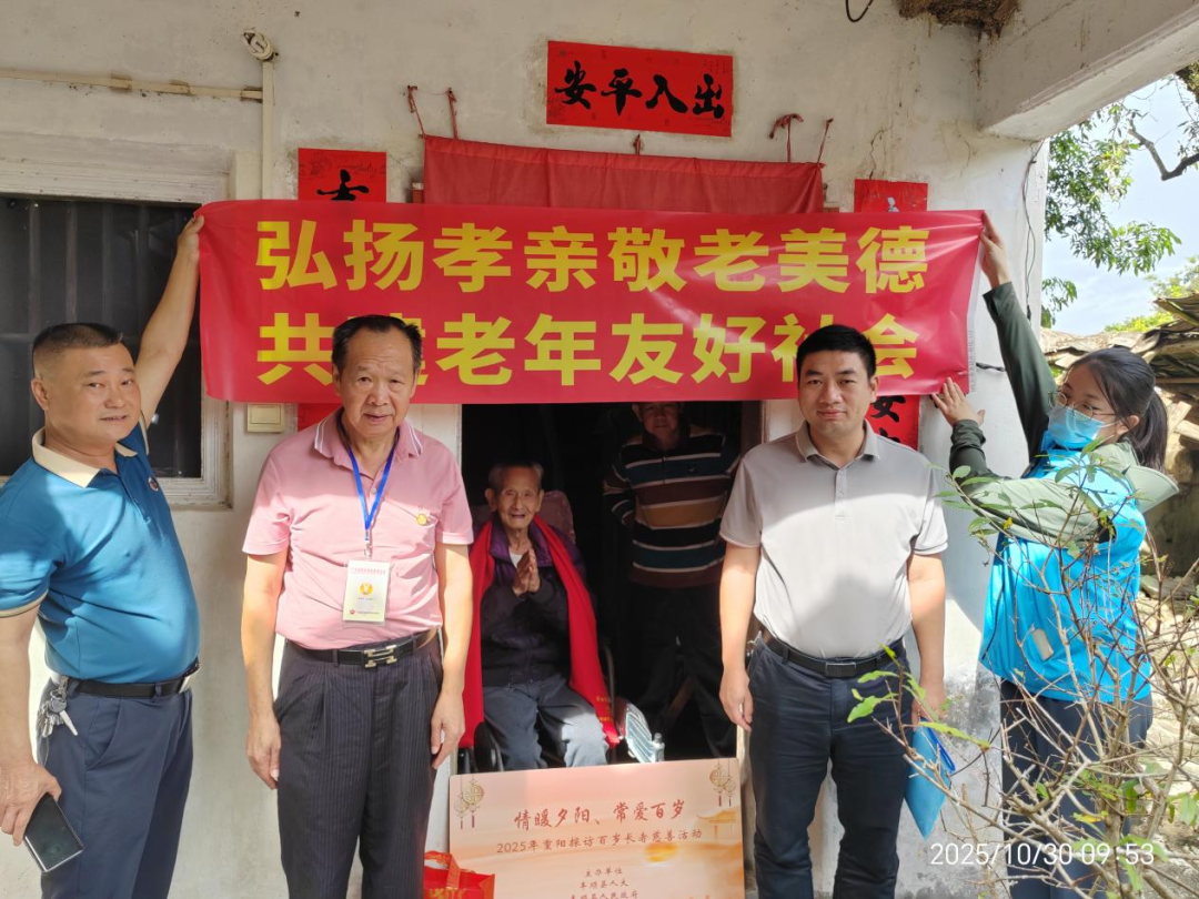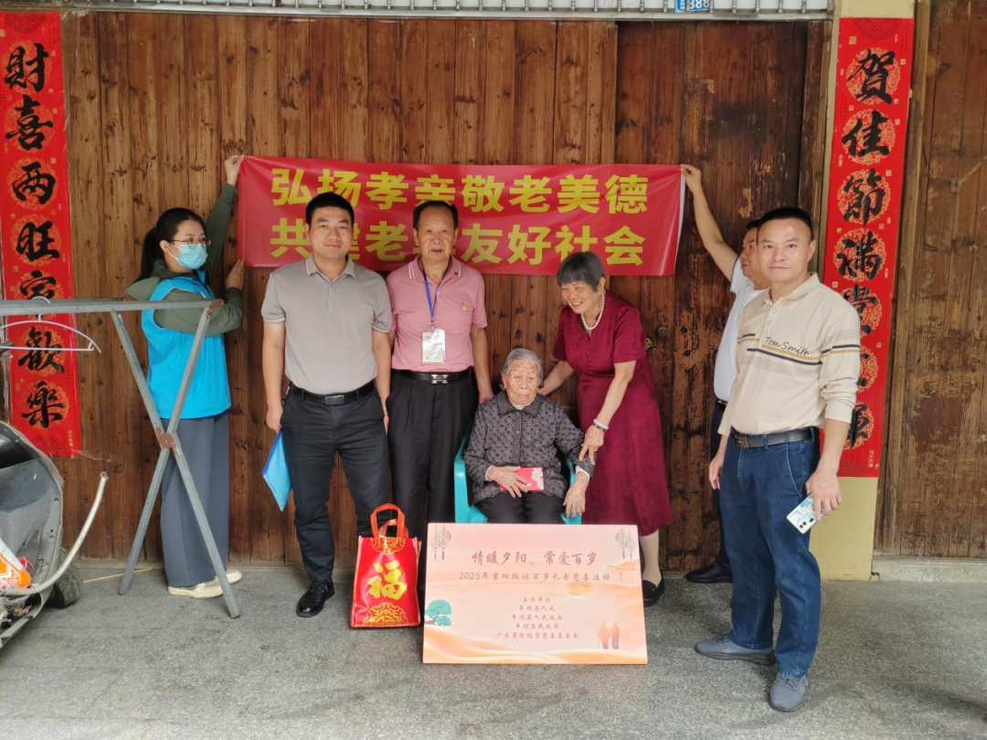 “家有一老,如有一宝”,百岁老人既是家庭的骄傲,也是社会的宝贵财富。重阳节当天,留隍镇社工站协同广东省陈绍常慈善基金会、县民政局养老服务中心,共同走访慰问了全镇11位百岁老人。慰问组一行与老人们促膝长谈,聆听他们的百年人生故事,细致了解其身体状况与生活需求,并送上基金会准备的慰问金和毛毯、奶粉等慰问品。通过温情的陪伴和实实在在的关怀,表达对百岁老人的崇高敬意和深切祝福,祝愿他们健康长寿、安享幸福晚年。