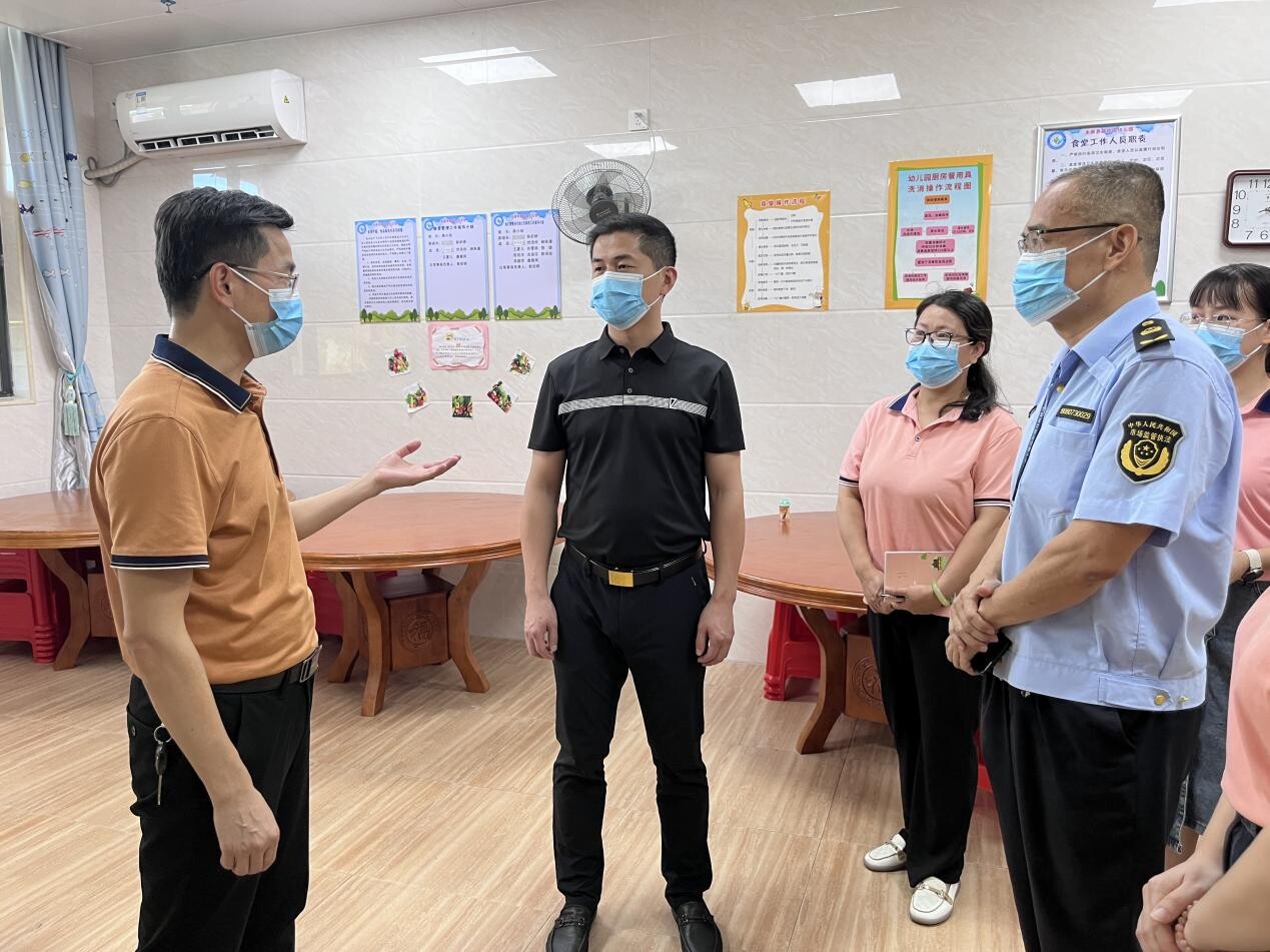 徐晓东一行对幼儿园食品安全工作机制贯彻落实情况进行检查,实地察看了食堂环境卫生、食堂信息公示栏,检查应急预案及演练方案,通过“互联网+明厨亮灶”细致观看了后厨操作间等,并听取叶韩杰对校园食品安全的相关汇报。徐晓东对丰顺县碧桂园幼儿园食品安全工作给予充分肯定,同时强调:日常工作中要保持警惕心,避免懈怠,要经常对照其他学校出现过的问题进行查漏补缺,有则改之,无则加勉。要规范流程操作,严格落实食品安全主体责任,确保全体师生生命健康及膳食均衡。