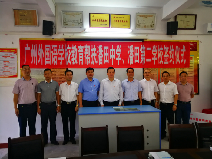 在潘田中学,樊群主持举行了广州外国语学教育结对帮扶潘田中学、潘田第二学校的签约和捐赠仪式,他指出,要通过对潘田教育的结对帮扶,充分发挥广州市教育局教育资源优势,实现线上优质教育资源互通,线下优质师资交流,提高当地的教学教育水平。