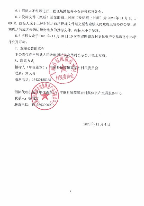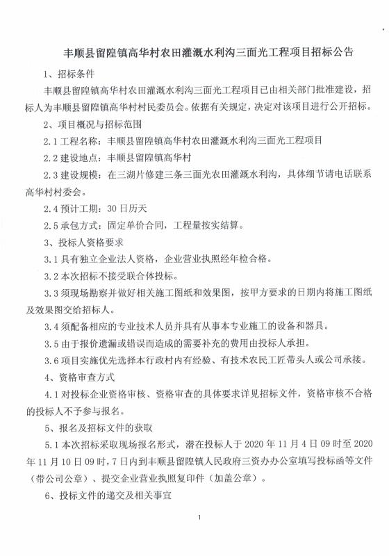 留隍镇高华村农田灌溉水利沟三面光工程项目招标公告