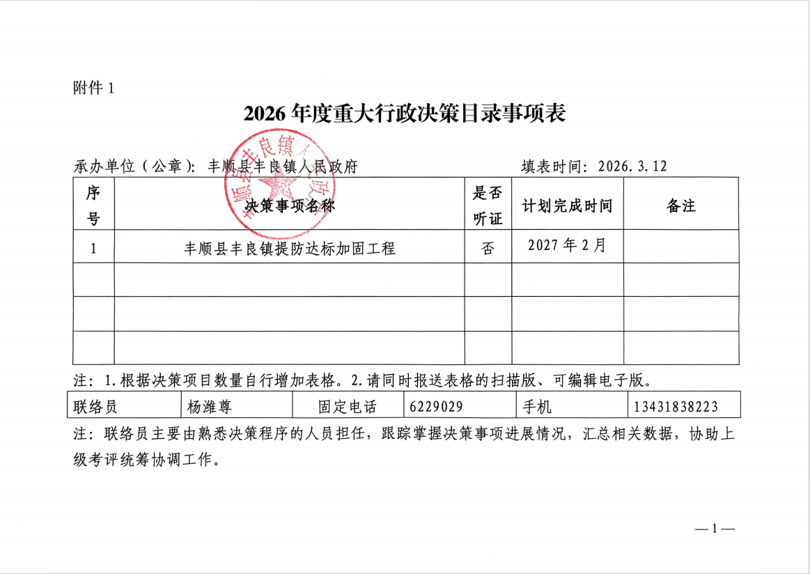 丰良镇2026年度重大决策目录事项表