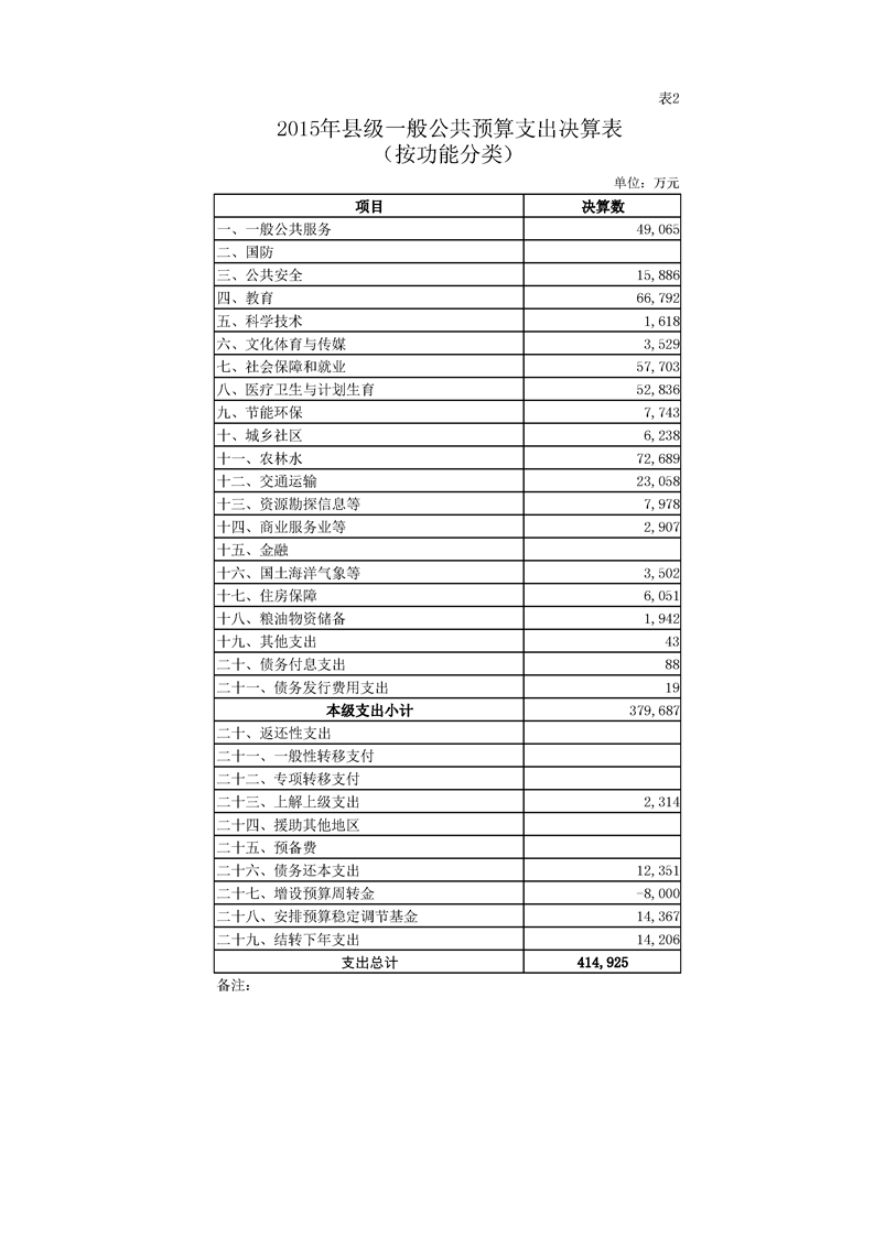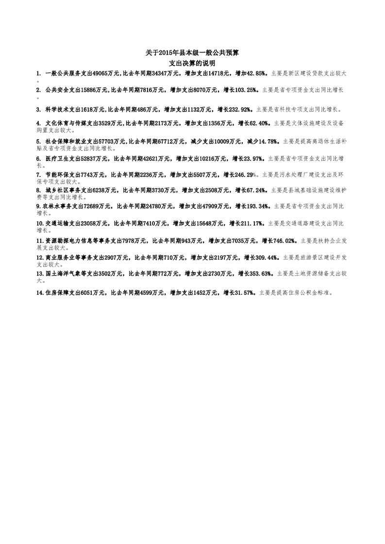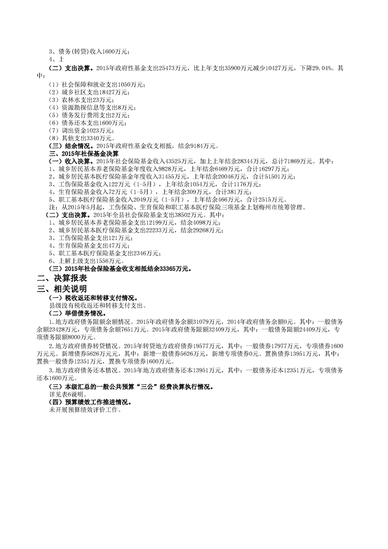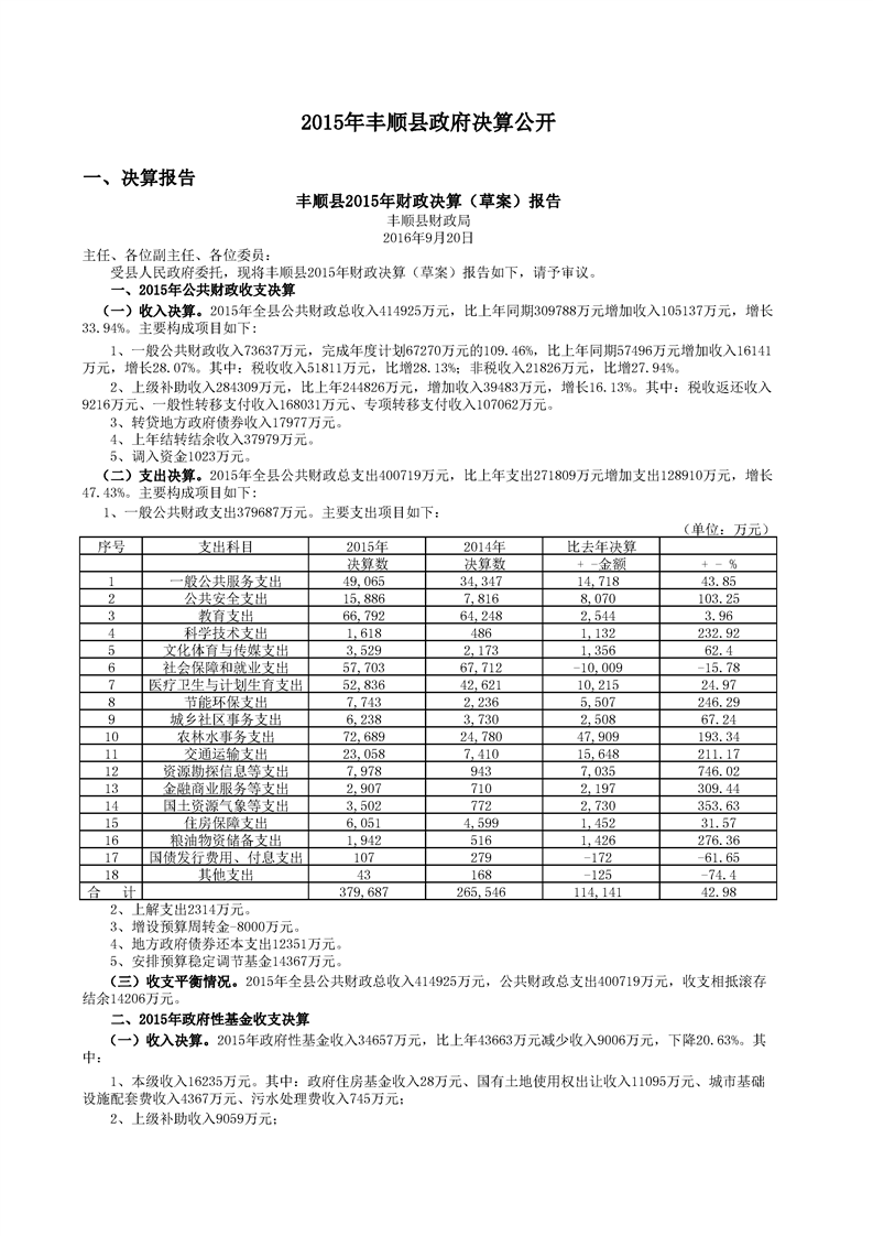 2015年丰顺县政府决算公开